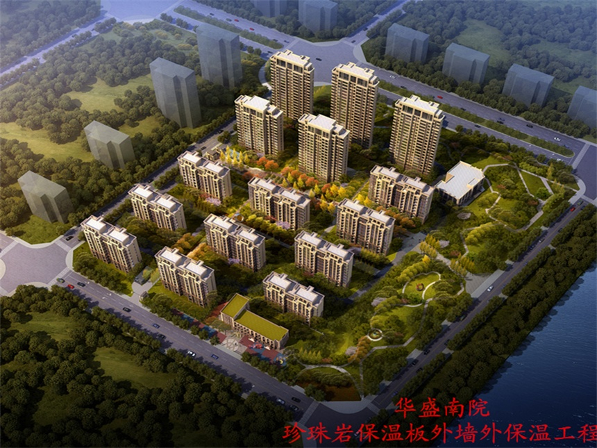 膨脹珍珠巖保溫板(改性珍珠巖)以改性膨脹珍珠巖為輕集料,與以水泥基為主的無機膠結材料、高分子聚合物、聚丙烯纖維、外加劑、功能性助劑等混合后,經模壓、養護工藝生產的無機防火保溫板材。